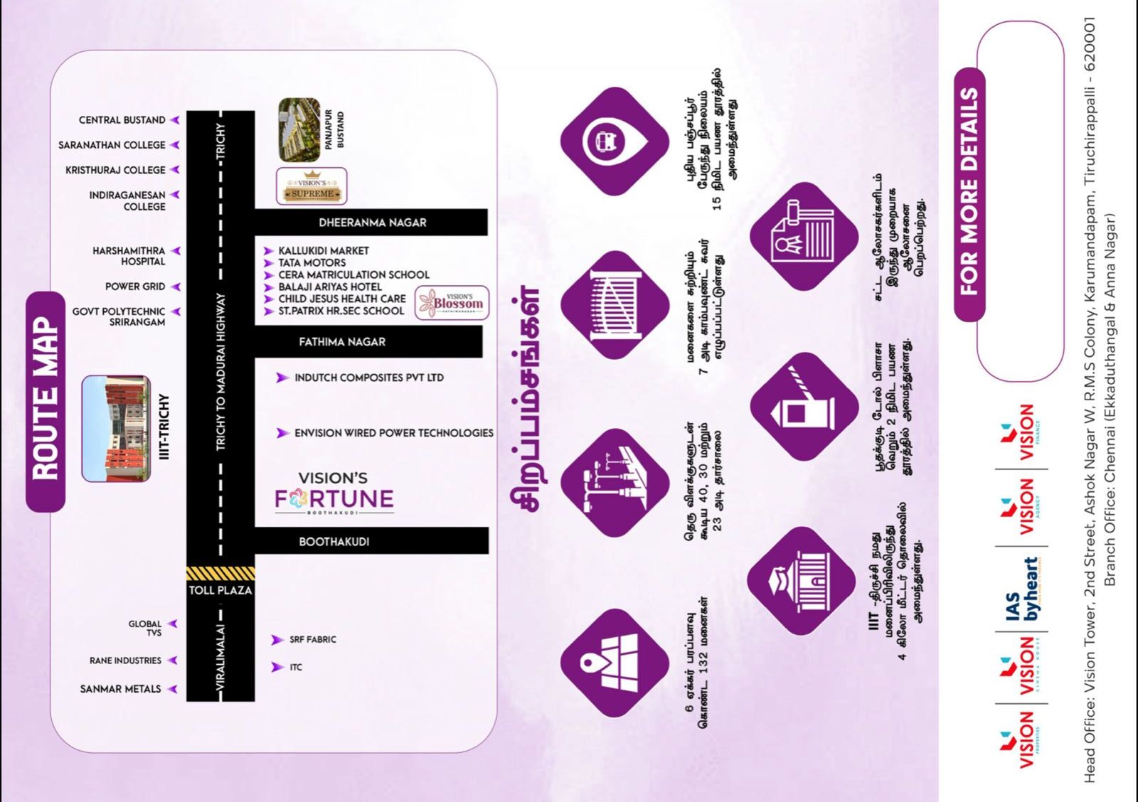 Visions Fortune is a residential plotting project by the Vision properties, strategically located at Viralimalai, Tiruchirappalli, Tamil Nadu.